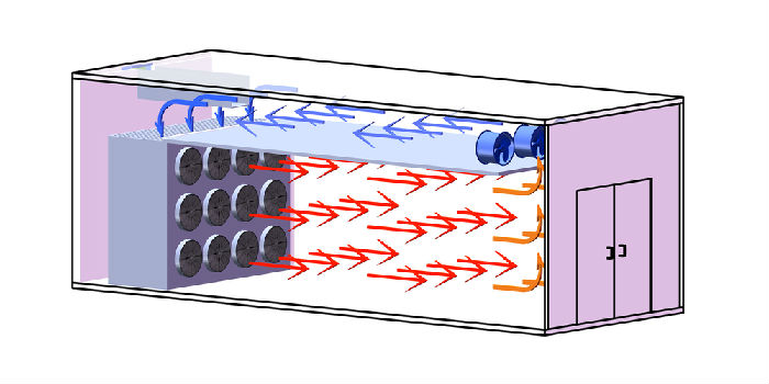 3,機組有上出風、下出風兩種結構,配套的烘房形式(shì)多為:正壓吹風,負壓回風(fēng)。